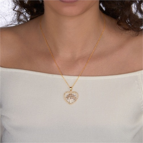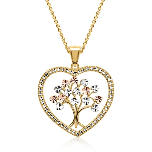 Hjerte i guld med Livets træ, hvor bladene på træet er i henholdsvis hvidguld og rødguld