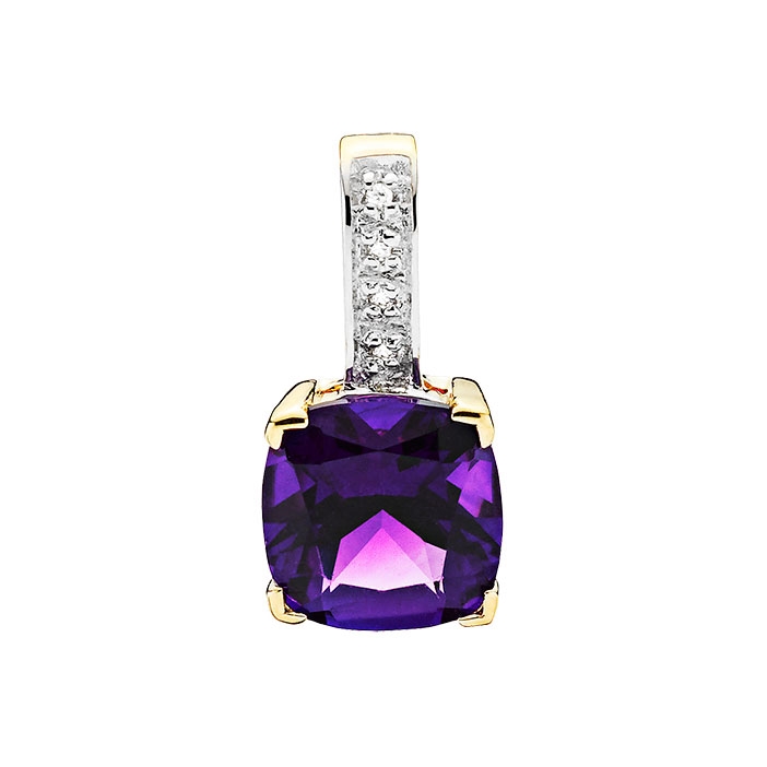 Vedhæng i 8 kt. Guld m. Ametyst & Diamanter