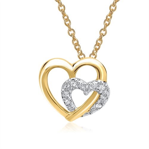 Dobbelt hjerte i 14 karat Guld og Hvidguld med diamanter