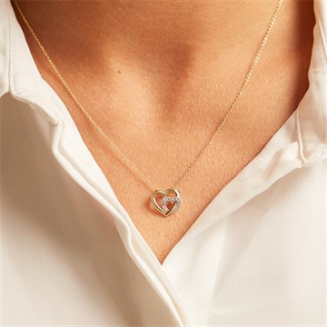 Hjertet i hjertet, det yderste i guld og det inderste i hvidguld og besat med funklende hvide diamanter