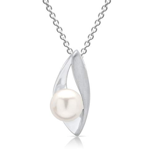 Vedhængets er med en fin ferskvandsperle og overfladen er delvis mat og poleret