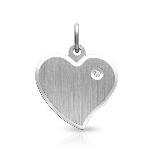 Hjertets overflade er matteret med poleret kanter og én zirkonia sten