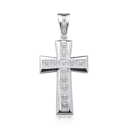 Korset er besat med talrige zirkoniasten og overfladen er poleret
