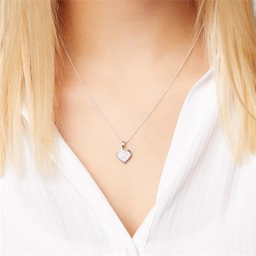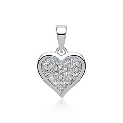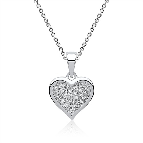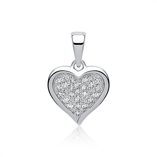 Hjertet er besat med funklende zirkoniasten. Overfladen er poleret og rhodineret, så det ikke anløber