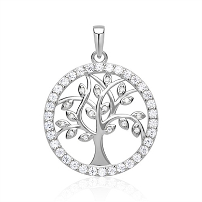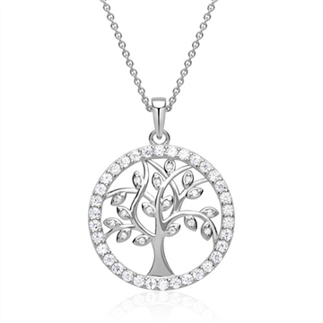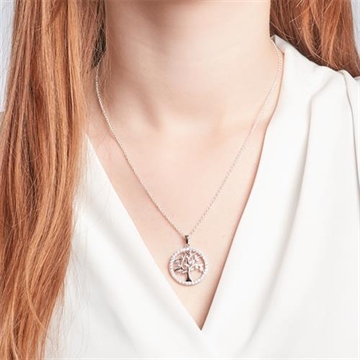 Det runde vedhæng og livets træ er besat med funklende zirkoniasten