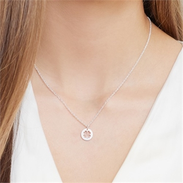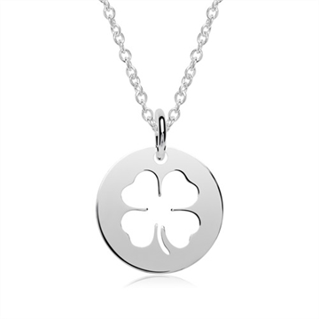 Rundt vedhæng i Sølv med Firkløver