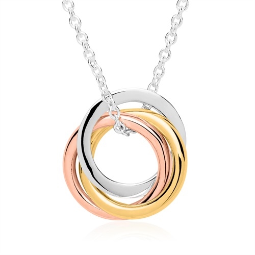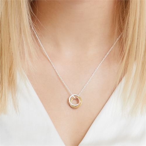 Vedhænget er med 3 flotte ringe, der er flettet ind i hinanden