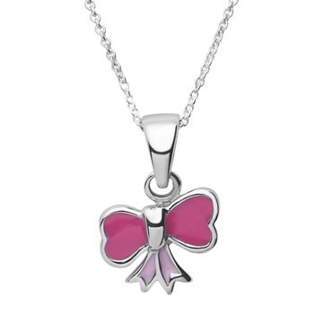 Vedhæng i sølv med en lyserød sløjfe