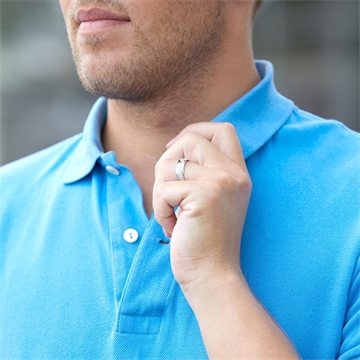 Vielsesringens overflade er med polerede kanter og iskrasset mønster med blanke riller