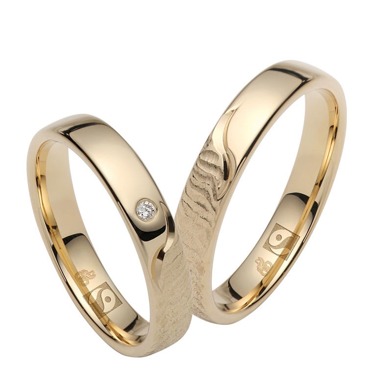 Vielsesringenes overflade er højglans poleret og med mønster