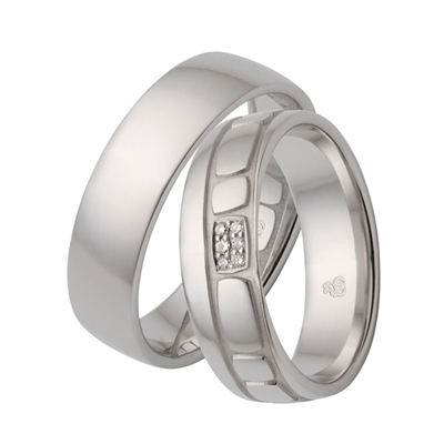 Dameringen er med 6 diamanter samlet i et rektangel på den ene side og med et flot mønster