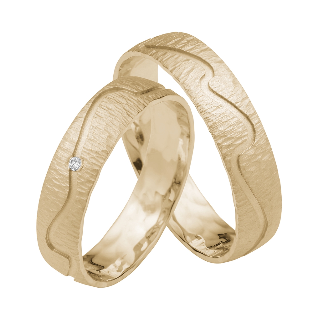 Vielsesringenes overfladen er let hamret og poleret