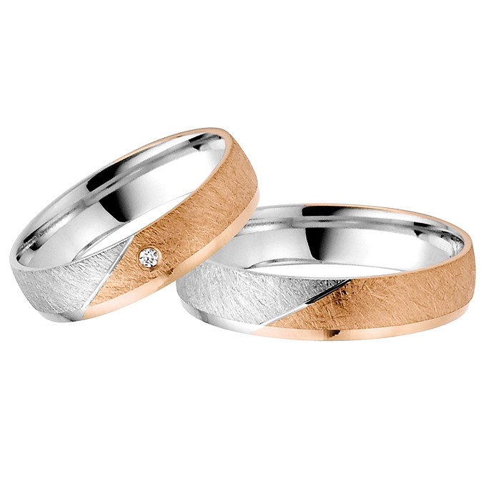 Vielsesringe i 8 kt. Rødguld og Hvidguld