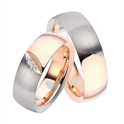 Vielsesringe i 8 kt. Rødguld & Hvidguld