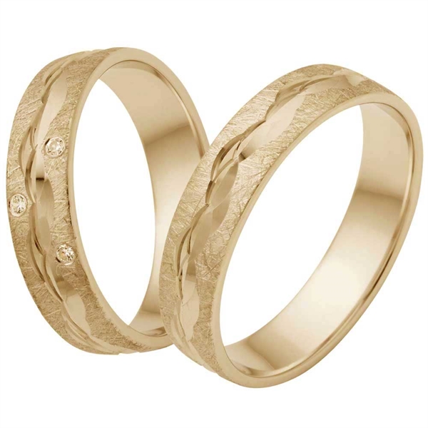 Vielsesringenes overflade er iskrasset med poleret mønster
