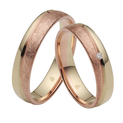 Vielsesringenes overflade er mat (frostagtig) og højglans poleret