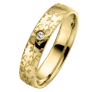 Vielsesringe i guld med 0,02 ct. w/si diamant fattet i dameringen