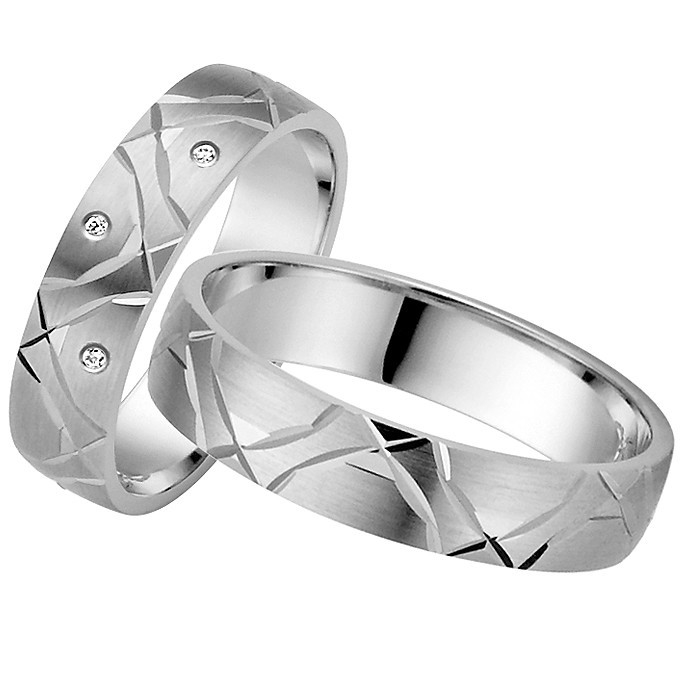 Vielsesringe i Hvidguld med Diamanter 0,015 ct. - 5 mm