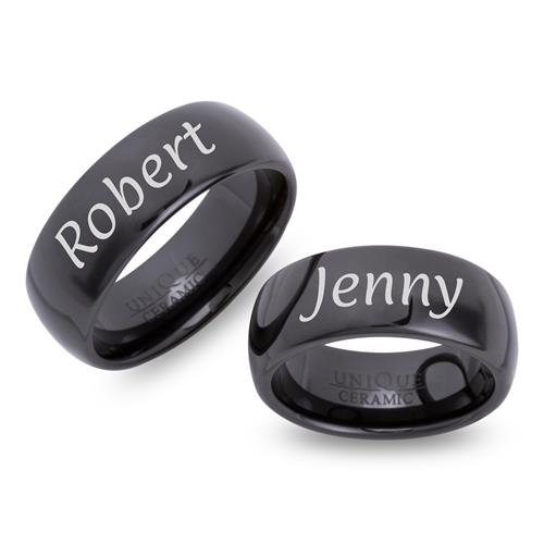 Sorte forlovelsesringe og vielsesringe i Keramik med udvendig lasergravering
