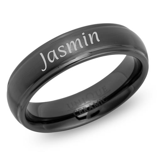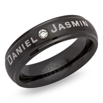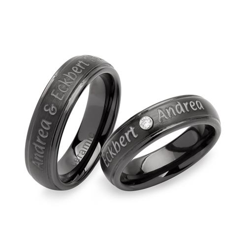 Sorte vielsesringe i Keramik med udvendig lasergravering