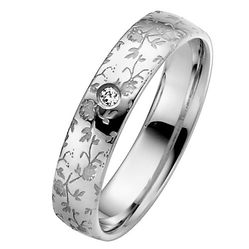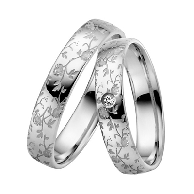 Vielsesringe i palladium med 0,02 ct. w/si diamant fattet i dameringen