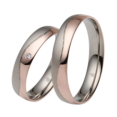 Vielsesringe i 8 karat Rødguld og Hvidguld