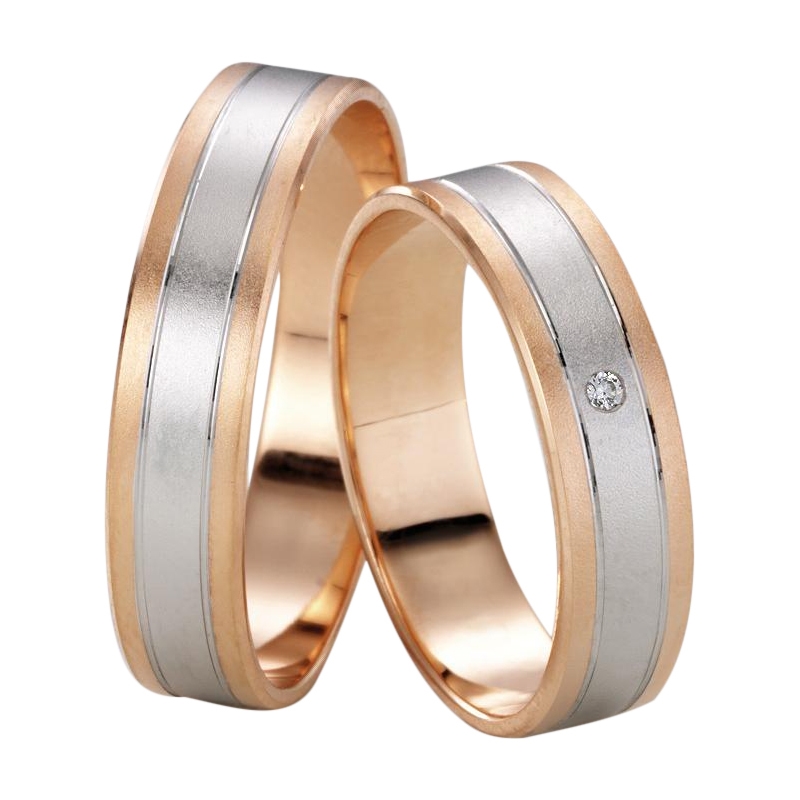 Vielsesringe i 8 karat Rød og Hvidguld