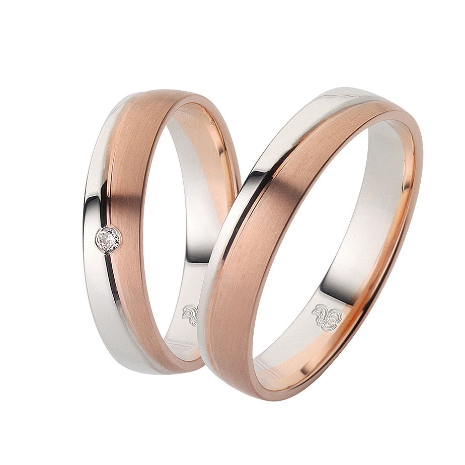 Vielsesringe i 8 kt. Rødguld og Hvidguld