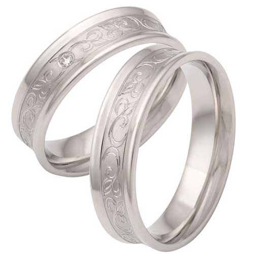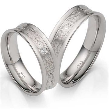 Vielsesringenes overflade er mat og poleret med yndigt graveret mønster