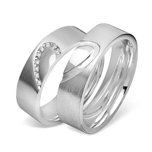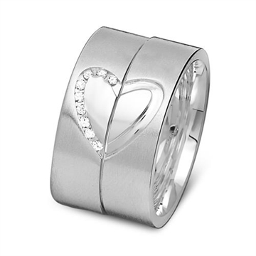 Dameringen er besat med flere zirkonasten og begge ringe danner tilsammen et hjerte