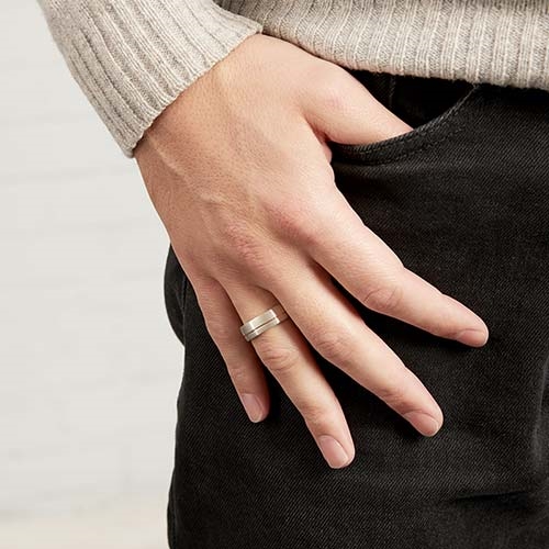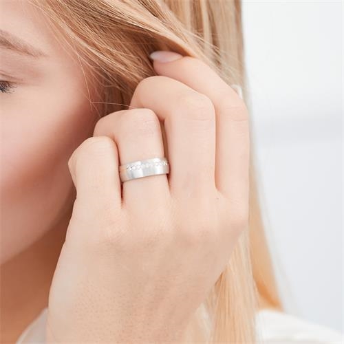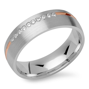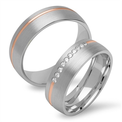 Vielsesringenes overflade er mat i længdegående retning og med en rille af rosaforgyldt sølv