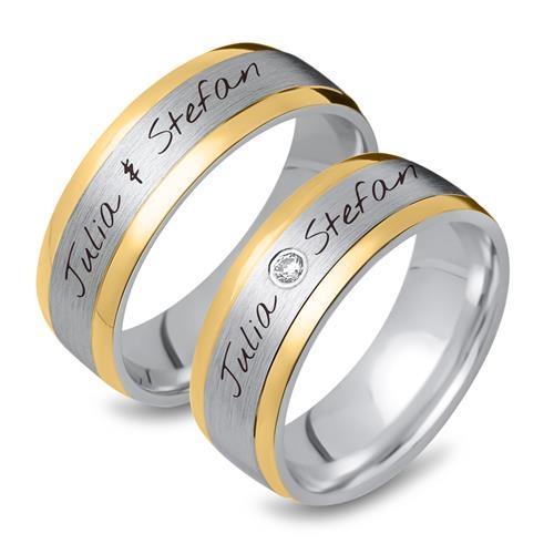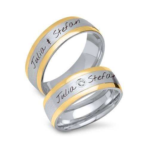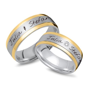 Delvis forgyldte vielsesringe i Sølv med udvendig gravering