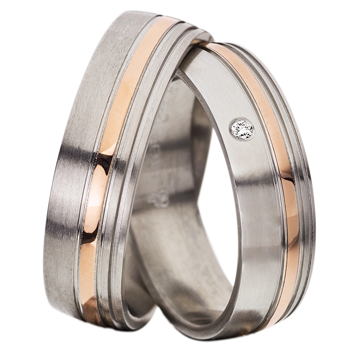 Vielsesringenes overflade er højglans poleret, silkemat og med en rille af rødguld