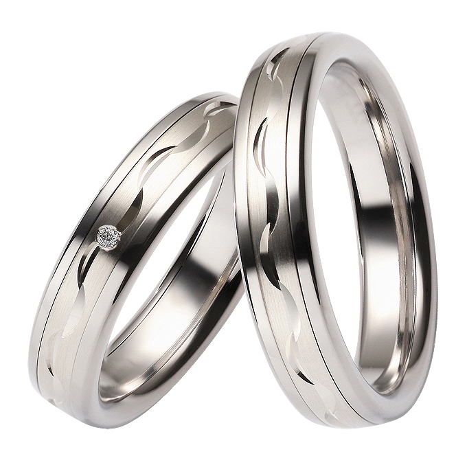 Vielsesringe i Stål og 8 kt. Hvidguld