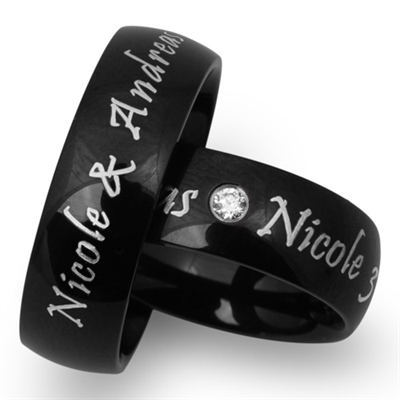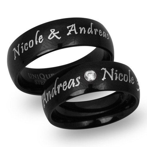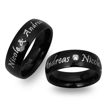 Sorte vielsesringe i Stål med udvendig lasergravering