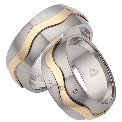 Vielsesringe i Stål og 14 kt. Guld
