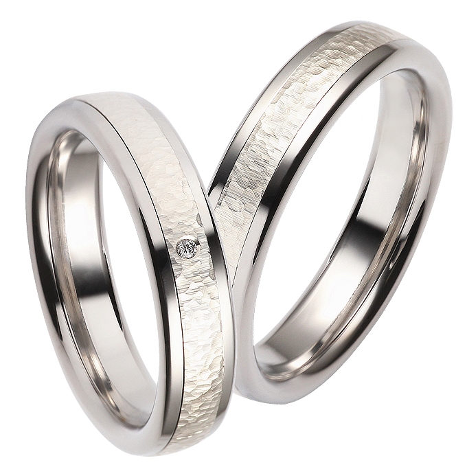 Vielsesringe i Stål og 8 karat Hvidguld