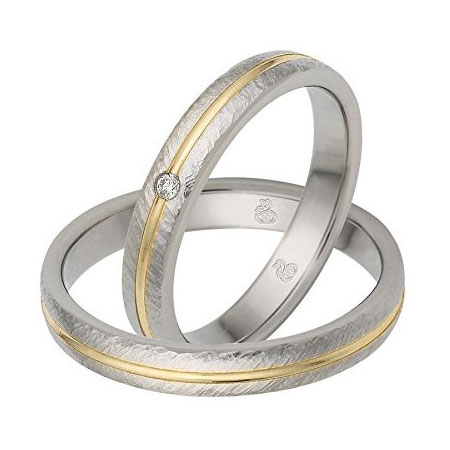 Forlovelsesringe og vielsesringe i Stål og 8 karat Guld