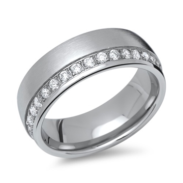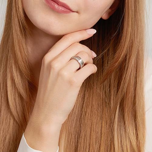 Dameringen er matteret og besat med funklende zirkoniasten langs den ene side