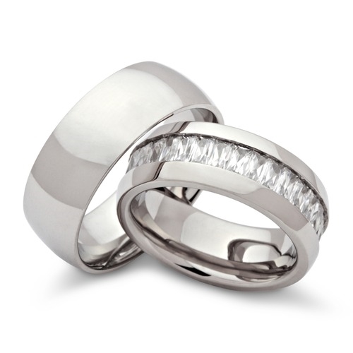 Bredde forlovelsesringe og vielsesringeringe i Stål