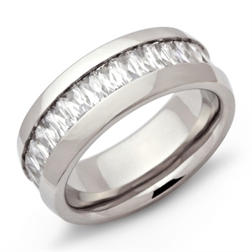Ringenes overflade er højglans poleret og dameringen er besat med talrige zirkonia sten