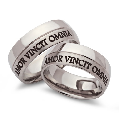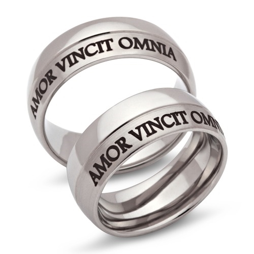 Forlovelsesringe og vielsesringe i stål med udvendig lasergravering