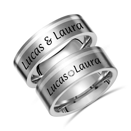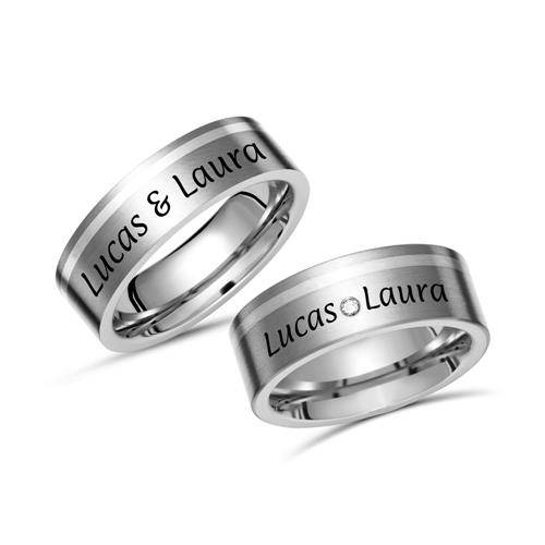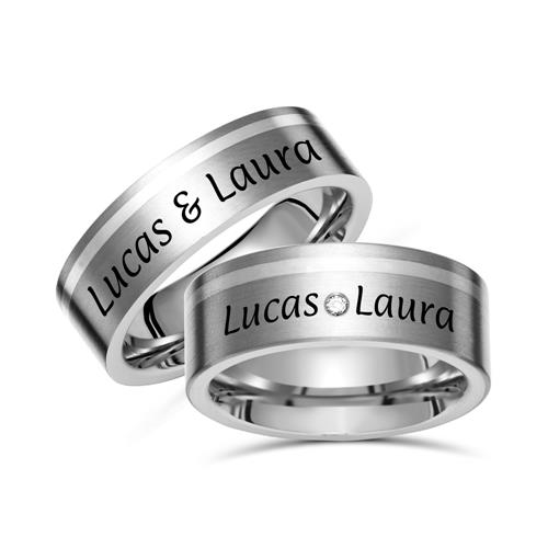 Vielsesringe i Titanium og Sølv med udvendig lasergravering