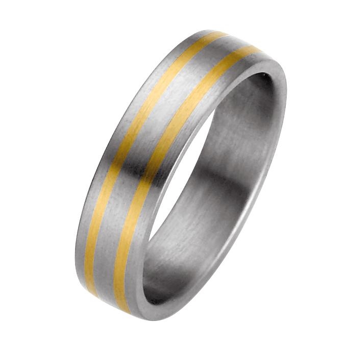 Vielsesringenes overflade er børstet med 2 riller i guld