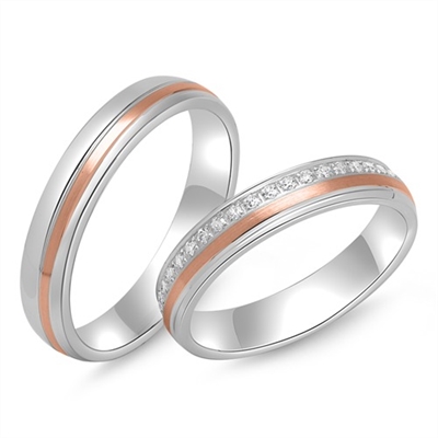 Vielsesringe i tofarvet Sølv med zirkoniasten