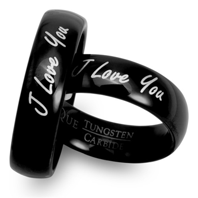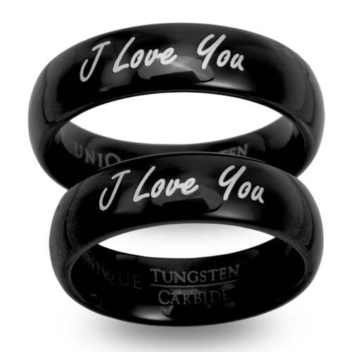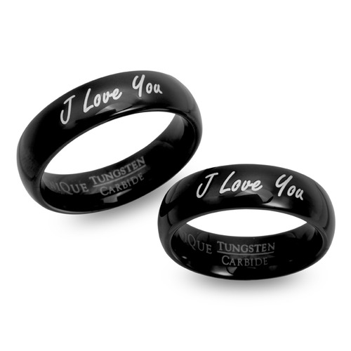 Sorte vielsesringe i Tungsten med udvendig lasergravering