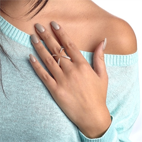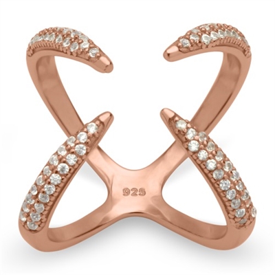 Rosaforgyldt X - ring i Sølv med funklende zirkoniasten